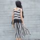 与上衣的横条纹不同的是,裤子特意做成竖条纹的形式,更显瘦。