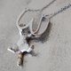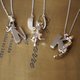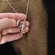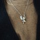 字母 W 坠饰 以柔媚眼神回眸的猫咪坠饰 背面点缀着小巧的心形图案 字母背面经过缕空处理,因此份量感十足却又轻巧 材质:925 纯银/RP 尺寸:37.3×18.5mm 链长:45-50cm 重量:9.8g (含链子)