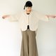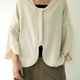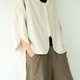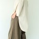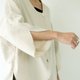 领口、下摆与袖口皆做弧线的剪裁,整体为前短后长的衬衫设计。落肩的肩线搭配上开的郁金香袖口,整体袖长为七到八分袖,背后裁片则也是用大弧型连接。可以搭配合身内搭也可在春季单穿。扣子则是使用本系列主要的缠绕线老扣饰。