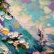 The work is done in oil technique by brush and palette knife. Small painting with beautiful mountain lake in Canada