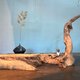 利用木材本身原始造型,加以设计成摆件台面。