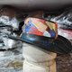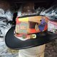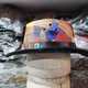帽冠采用高品质人造皮革精心拼贴而成,呈现缤纷的色彩效果。每个拼接面都带有不同的色调和纹理,仿佛混合了多种皮革,但实际上轻盈、耐用且零残忍。