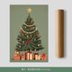 树下摆放着整齐的礼物盒,花纹、蝴蝶结、色调皆带着温柔的手作感,增添画面的丰富性与童心。背景以雾绿色铺陈,点点细致星光般的金点散落其中,使整幅作品在简约中保有节庆的华丽。