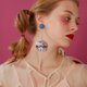 西迟原创设计树枝猫咪夸张大耳环长款个性气质手作树脂耳饰耳坠 - 耳环/耳夹 - 其他材质 蓝色