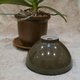 氧化鉄在釉中的呈色 变化极多,但氧化鉄烧成的洒金釉却只有黑褐色,经过多年的试验,加减配方并调整酸咸值,终于研发出绿色的新品种氧化铁洒金釉,本釉是氧化1250度烧成.釉层中间悬浮着密密麻麻的金点.光线照射时反射出金光.犹如夜空满天星斗.直径9.2cm.高5.1cm.容量80cc.清洁保养同一般陶瓷品.商品附柿子袋.