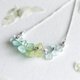 浅蓝+浅绿色绣球花 (真花) / 铜镀银链条 / 锆石配件 / 施华洛世奇平底钻