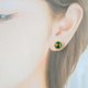 耳环的背景色调为沉静的绿色。耳环本体及金属圆框皆选用对金属过敏者也适用的材质。由于结合了树脂与干燥花,因此非常轻巧好配戴。