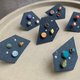 迷你尺寸(约4mm)的皮革耳环,没有金属框的束缚,一组三只(不同图案颜色)背面黏接硅胶耳针,配戴舒适又防过敏,适合喜欢低调可爱风格的人。