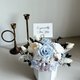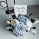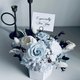 使用日本进口大地农园灰蓝与白玫瑰的永生花创作采用全不凋花材,一朵白色扩香花可以滴上喜欢的气味做扩香喔。搭配手工水泥六角花器是送礼、观赏及保存永生花最好的选择,好好照顾可以观赏3年以上喔~