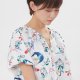 - - 細褶小V領 - 蓬鬆感泡袖 - 鮮豔花鳥印花布 - 100%純棉