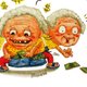 手绘插画万用卡/卡片/明信片/插画卡--有钱大家赚 开心 阿嬷 钞票