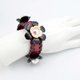 枣红色牛皮手带 缀 黑色塑胶茶花 施华洛水晶石 小珍珠装饰