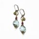 此款耳环串联了绿灰色的法式复古珠与石榴石。