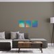 作品以雾状颜料的形式喷洒在画布上,液体的自然运动渗透、混合和干燥。
