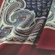 这款复古头巾由优质棉布制成,饰有精致的佩斯利印花图案,色彩层次丰富,包含红色、米色和蓝色。