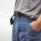 使用方式:将小扣穿过裤耳后再穿过大扣,最后调整织带拉紧即完成。