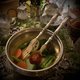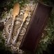 美丽法国Art Nouveau时期大型分食餐具组,手柄上有法国纯银Minerva印记,整体造型非常的典雅,上有美丽的Art Nouveau特有的雕花纹饰,连接着兽牙或兽骨材质的叉匙面,有高档按钮式绿绒原始收藏盒,珍藏或作为礼物,都非常适合,推荐收藏。