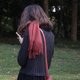 拍照时模特小姐搭配的是暗红色的羊绒围巾