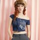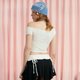 ✿ 罗纹织纹的短版上衣,质地轻薄,穿着舒适,提供 Cream 和 Navy 两种颜色选择。