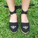 Bee Lace Up Sandals (Black) - 男女凉鞋 - 绣线 黑色