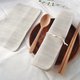 尺寸刚好的餐具袋,简单大方,有棉麻温暖的触感与立体织线;餐袋正面可直接当餐垫,可选择搭配榉木筷匙餐具组。
