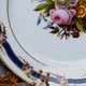1756年,法国国王路易十五在赛佛尔(Sèvres)设立了法国王室的官窑,为自己与显贵人士制造瓷器,而在十八世纪七0年代后,巴黎地区也出现了不同的民窑,有的甚至获得贵族的赞助,采用赛佛尔的造型与装饰图案,甚至也聘请赛佛尔的艺师操刀,发展出所谓的巴黎窑产品。这些巴黎窑产品有的有其特制的落款,但也有许多没有落款的产品。我们这组瓷盘(六客)便无落款,从花环、金边与花卉的图案来判断,为赛佛尔窑厂常见的装饰与色彩,应为巴黎窑的产品。中央的花卉绘制典雅细致,写真传神,出自巧匠之手;盘缘金边与花环饰带,同样考究,蓝色滚边点出这组瓷盘与法国官窑赛佛尔的渊源。
