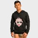 LS02-Medusa 男长袖刷毛印花帽T-黑