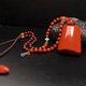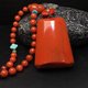 **〔 简介 〕:精品南红毛衣链,搭配天然南红吊坠【无事牌】规格:49.7*36.7*15mm,吊坠重48.2克,点缀南红三通,银镶嵌葫芦吊坠,绿松石隔片,碧玉圆珠,银镶嵌绿松石,搭配手工编织链一条,总重71.2克
