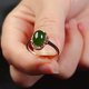 - 【名称】和阗玉蛋面戒指 925纯银 【尺寸】裸石尺寸约: 9 x 6.6 x 3.5 mm 【颜色】绿 【备注】天然和阗玉/戒围活围 【编号】EL20231018-13EL