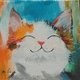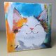 这幅小小的 15 × 15 cm 原创油画,画着一只笑到眼睛弯弯的小猫。它的表情没有理由、没有负担,只是单纯地开心着——仿佛在对你说:“累了?笑一下就好了。”