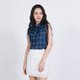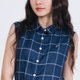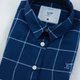 - Navy blue check women shirt slim fit with plane origami embroidery