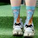 • 袜子正面印有一只大型的虎斑猫图案,猫咪有棕色条纹毛发,表情温柔可爱,眼睛圆滚滚,带有一丝好奇的神情。