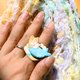 1. 这款戒指的原材料是石塑粘土(有点像石膏)。它很轻,也很坚固。请你放心,它不至于像鸡蛋壳那样脆弱,但也没像石头那样硬,像其他戒指一样正常佩戴即可。(想象你带了一个大钻戒,你会怎么做~)