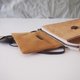 *内面缝上具保护性的绒布,贴心保护手机及财物;钮扣采用了椰子壳制成,用上橡筋扣紧