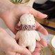 我制作这个系列的目的是为了春天、和平和希望。对于大象,我选择了白色的德国黏胶作为希望和祈祷和平的象征。尽管有战争,但仍然有爱和梦想的空间。我用捷克珠子和珍珠装饰了大象,它们看起来非常精致。大像很小,随身携带或放在架子上很方便。大像有一个盘关节,它们可以转动头部,但不能转动四肢。每个玩具都有它的包包和护照。