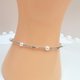 5枚4.5-5.0mm天然淡水baby珠呈现出冷白色的天然光芒,并伴有极光炫彩,清亮美好,虽有微瑕微生长纹,但是呈现出自然般的色彩层次感,稀有珍贵。纱织小姐将其与S925银14K注金配件连缀,并与龙虾扣相连接,形成约17+3.5cm长的手链,可以与亚洲大多数女性手腕适配,简约美好。自然光下每一颗冷白色的baby珍珠都分别呈现出各自的七彩光芒炫彩,皮光细腻,微瑕炫彩,似镜面可照出人影,美得不可方物。
