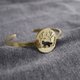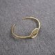- ●材质:黄铜 ●尺寸:圆形直径约2.2cm,手环宽度约3mm,厚度约1.4mm,总长约15.5cm 手环环形为椭圆形,可压两侧自行调整松紧度