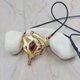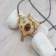金铜及紫铜以流动线条绕纒,中心石榴石寓意回归中心及生命力,非常富有中世纪特色。