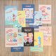 以水彩绘制的美式可爱风,以早餐、汉堡店、超级市场、保龄球馆及看电影为主题的明信片。