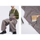 后背X造形立体剪裁,裤子两侧各有一大立体口袋,钮扣开合,