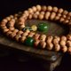 搭配崖柏木108颗佛珠作为项链珠链,搭配碧玉雕刻莲花珠,珠链不对称设计打破几何蜜蜡的沉重感,增添灵动别致的感觉!