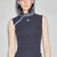 —拼接風帽以添加運動氣質並在領部附有拉鏈以調整穿著方式