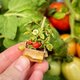 纸箱中的微型花园番茄幼苗。套装包含一小丛不同成熟度的番茄,种植在纸箱中。此套装由聚合物黏土、纸张、压克力颜料和清漆制成。套装包含一个水罐,微型模型与照片中一样明亮。