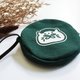 - 五郎墨绿色帆布猫圆型零钱包,附挂绳