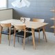 不自觉想要抚摸的橡木木纹,舒展的它给人温和的形象。但即使如此它的耐久度不凡,让全家人围绕在餐桌用餐也不会有任何问题。毫无疑问这将会成为与自然团圆的一个空间。广阔的桌面即使有再多的料理也不成问题,想要办生日派对也是可以的。这款餐桌只要在家有个一台便能成为自然与人们相处的空间吧。现在似乎能听到围绕在温暖的餐桌上那欢声笑语的声音呢。