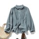 大人可爱りの圆领衬衫,带有细致的褶襇,长袖亚麻混纺衬衫,浅青绿色 241007-3