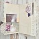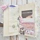 手工制作的月亮日记包含:茶染纸、档案纸、蕾丝、吊饰、织品封面。精装本,但上面有织物。