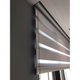 调光卷帘,又称斑马帘,其实算是前后双层卷帘,一端高挂在前方卷轴, 另一端高挂固定在后方形成两层。操作卷轴时,靠窗后层的条纹不会因上下操作而变动,前面那一层则成了调光的关键,当它的密织遮光段与后方的镂空窗纱段重叠,整体会有遮光效果。当它的密织遮光段与后方的密织遮光段重叠,整体则会有透光的效果。遮光与透光之间可以无段调光喔!