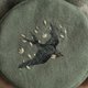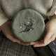 - 可爱的圆形收纳包上绣有散落的花瓣和飞翔中的燕子。