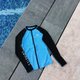 拣防晒衣怕太紧?但其实紧贴身体,下水刚刚好,仲可以活动自如~ 防晒衣属修腰剪裁,大领位剪裁,泳衣布料有颇大弹性及 SPF 50+ 防晒,而且有轻微保暖作用。浅蓝色拼黑色袖子,胸口及手袖分别印有 SWIMATES 标志,低调中见细节。